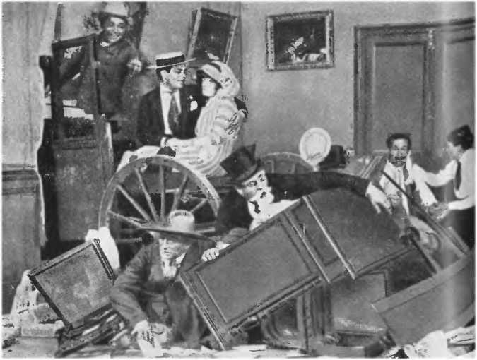 Экипажи, насквозь пробивающие дома, комические полисмены, сливочные торты, пародии, гротескные джентльмены, глупцы, акробаты на крышах «Гомон-паласа».