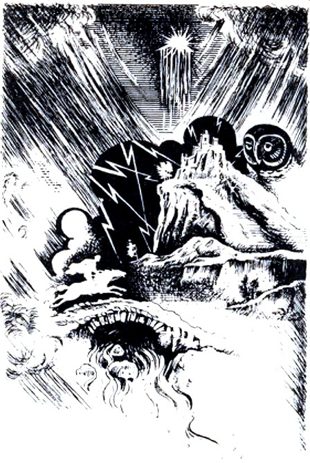 Молнии вспыхивали одна за другой, и вскоре молодой человек уже довольно хорошо ознакомился с окружающей местностью. Дорога подымалась по противоположному склону оврага столь же круто, как только что спускалась, и представляла для путника не меньшие трудности. Полноводная прозрачная Крёза почти бесшумно катила свои волны по дну пропасти, с глухим и протяжным ревом врываясь под тесные своды старого и, видимо, шаткого моста. Впереди все исчезало за крутым поворотом дороги, но слева простиралась зеленая даль раскинувшихся по склонам сочных лугов, среди которых змеилась река, а прямо перед глазами путника, на высокой горе, щерившейся грозными скалами, выступавшими над пышной растительностью, возвышались еще мощные, хотя и полуобвалившиеся башни огромного разрушенного замка. Но если бы даже смелому юноше и пришло в голову искать там убежища от грозы, он отказался бы от этой мысли, ибо замок, отрезанный от дороги другим оврагом, по которому несся поток, низвергавшийся в Крёзу, казался совершенно недоступным. Необычайно живописная местность при мертвенно-бледном отблеске молний выглядела весьма зловеще, что про нее никак нельзя было сказать при свете дня. Крыша замка обрушилась и обнажила гигантские печные трубы, вонзавшиеся в тяжелую, нависшую над ними тучу, словно они стремились ее разорвать. Когда мгновенные вспышки молний рассекали небо, развалины белым видением вставали из тьмы, но стоило глазу освоиться с мраком, они вырисовывались черной громадой на более светлом небосводе. Яркая звезда, которую облака не осмеливались, казалось, поглотить, долго сияла над горделивой башней замка, подобно драгоценному алмазу на челе великана. Затем она исчезла, и сквозь потоки дождя, полившего с удвоенной силой, путник видел все как сквозь густую сетку. Падая на ближние скалы и на окаменевшую от летнего зноя почву, струи подскакивали и вскипали белой пеной, образуя вихри водяной пыли, которые подхватывал ветер.