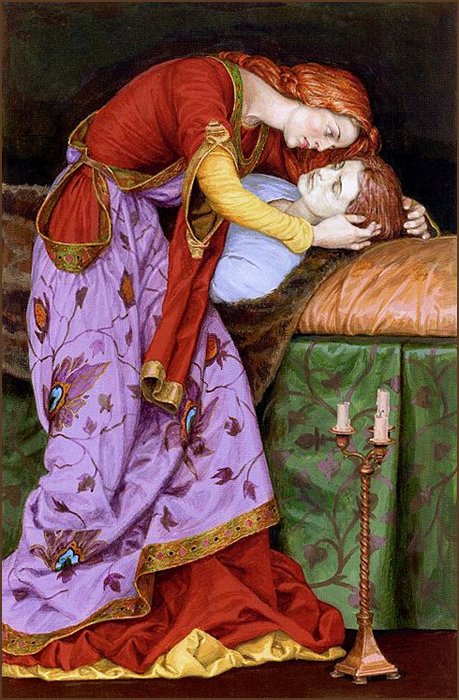 Около Тристана белорукая Изольда, растерявшись от зла, которое она совершила, испускала над трупом громкие вопли. Другая Изольда вошла и сказала ей: