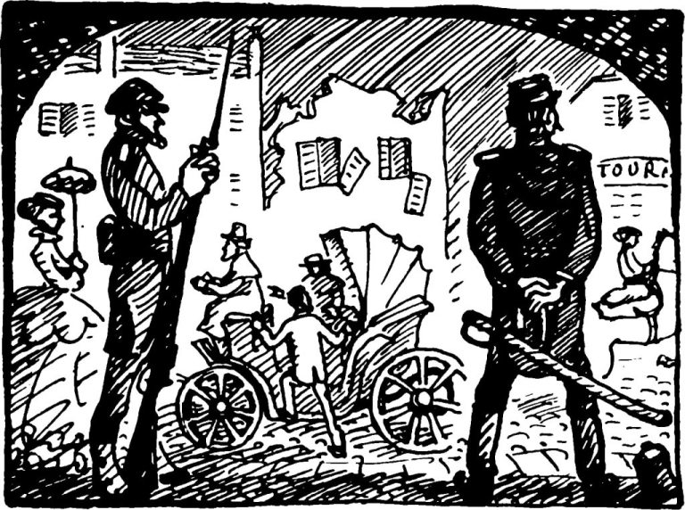 Отовсюду бежали люди. Проскакала конница генерала Домбровского. У казарм строились гвардейцы. Старики, женщины, дети таскали для баррикад бревна, доски, мешки с землей, волокли комоды, кровати, чугунные ограды, выворачивали камни из мостовой. Париж готовился к отчаянной схватке.