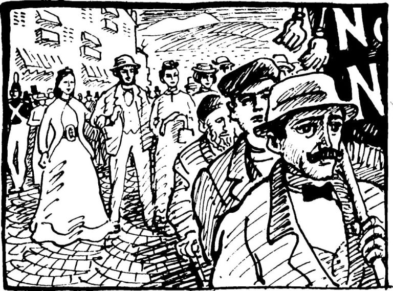 Потом выступали другие ораторы. Говорили о профсоюзах. Профсоюзы – это сила. Они не должны стоять в стороне от политической борьбы. И хватит работать по четырнадцать часов. Надо требовать установления восьмичасового рабочего дня. А церковь должна быть отделена от государства.