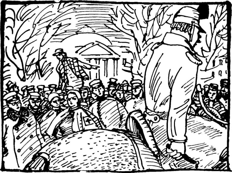 Сотни студентов собрались перед зданием академии. Они запрудили все прилегающие улицы. К ним присоединился еще народ. Виднелись пестрые платки и шляпки женщин, серые крестьянские зипуны и кое-где – картузы мастеровых.