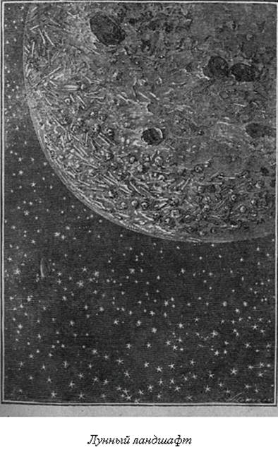 То же самое отсутствие воздуха влечет за собою еще одно явление: в частях Луны, которые непосредственно не освещаются солнечными лучами, господствует абсолютная темнота. Если житель Луны защитит глаза от солнца, небо покажется ему совершенно черным, а звезды будут ярко сиять над ним, как в самые темные ночи.