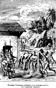 «В воскресенье, 16 марта, вступили в страну Сибао, где земли тощие и гористые. Горы здесь были бесплодные, усеянные большими и малыми камнями. На холмах, не покрывая их сплошь, росла низкая трава… Везде в этой провинции были бесчисленные реки и ручьи, и повсюду в них найдено было золото».