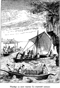 На следующее утро, 13 октября, туземцы толпою окружили каравеллы. Они приплыли на своих больших челноках, выдолбленных из цельного ствола дерева и вмещавших до сорока пяти человек. Они ловко управляли этими лодками с помощью весла, похожего на широкую лопату, и передвигались с большой быстротой. Многие островитяне были украшены золотыми пластинками и золотыми кольцами, продетыми через отверстие в носу. Казалось, они были взволнованы прибытием чужеземцев, корабли которых свалились к ним точно с неба. Они подходили к испанцам, дотрагивались с большим удивлением до их одежды, принимая ее за какое-то непонятное для них природное оперение. Особенно их привлекло алое платье Колумба. По-видимому, они приняли его вначале за какого-то попугая высшей породы. Впрочем, вскоре туземцы сообразили, что этот человек – самый главный среди всех прибывших чужеземцев.