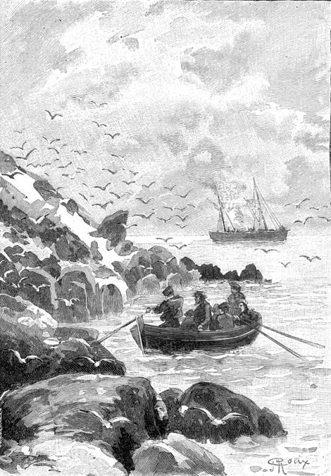 «Кроон» быстро продвигался вперед. Ветер был попутный, что позволило судну нестись на всех парусах. Четыре или пять миль, отделявших его от земли, «Кроон» прошел меньше чем за час и стал на якорь в двух кабельтовых от крутого утеса на южной оконечности островка, примыкающего к Западному Шпицбергену.