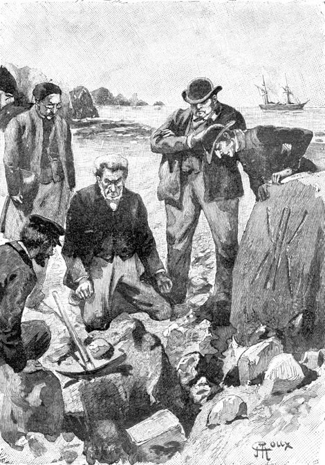 В документе указывалось, что поиски следует вести на южной оконечности острова. Поэтому наши путешественники направились к группе скал, которые дальше других вдавались в море. Эти четко выделявшиеся выступы не покрыты ни мхом, ни снегом, что в значительной мере облегчало поиски.