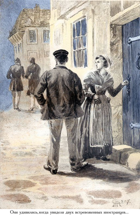 Вот об этом-то и беседовали на обратном пути молодой капитан и его невеста, покончив в то утро с деловыми визитами. И как же они удивились, когда увидели двух возбужденно жестикулирующих и явно чем-то встревоженных иностранцев, выходящих из знакомого нам дома на улице От-Салль! Что понадобилось этим людям от дядюшки Антифера? У Жюэля мелькнуло подозрение, что произошло нечто из ряда вон выходящее.
