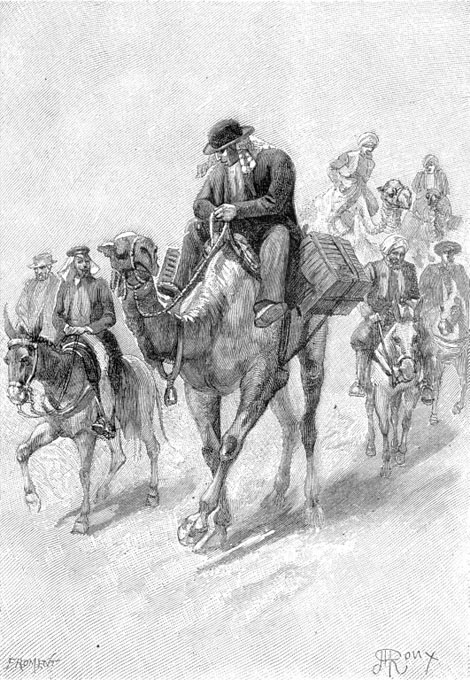 Животные, служившие для перевозки пассажиров и товаров, оказались трех видов: верблюды, мулы и ослы. Нечего было и думать о возможности приспособить какой-нибудь экипаж или хотя бы простую тележку. Да и какие колеса могли бы двигаться по бездорожью, по этой пересеченной, частично заболоченной местности! Поэтому каждый устроился как мог.