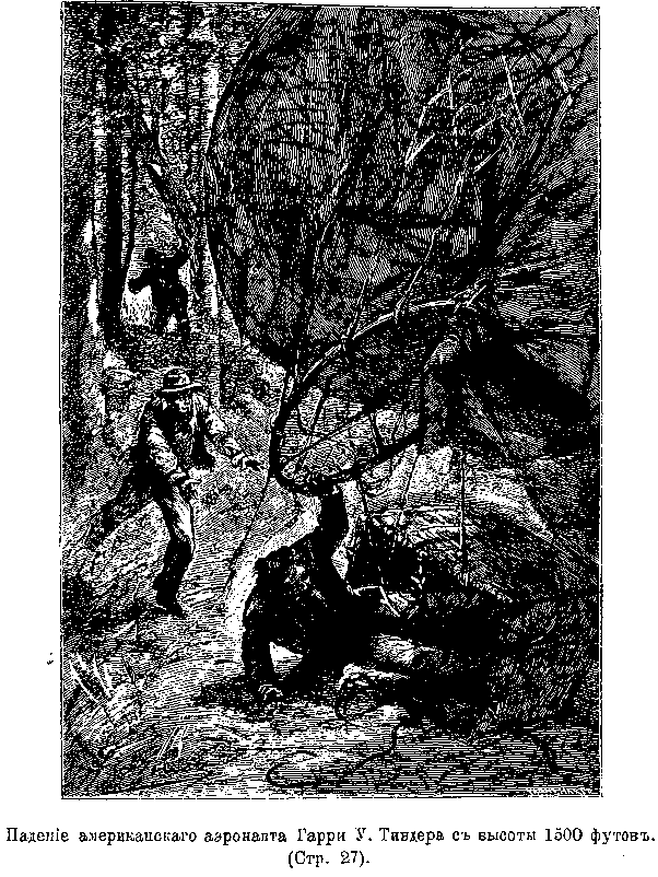длиннѣе воздушнаго пути Надаровъ, Годаровъ и многихъ другихъ, не считая Джона Вайза, пролетѣвшаго тысячу сто миль отъ Санъ-Луиса въ графствѣ Джефферсонъ; наконецъ, въ третій разъ его путешествіе окончилось ужаснымъ паденіемъ съ высоты 1500 футовъ, при чемъ воздухоплаватель отдѣлался лишь незначительнымъ поврежденіемъ правой руки, тогда какъ менѣе счастливый Пилатръ де-Розье убился до-смерти при паденіи всего съ высоты 700 футовъ.