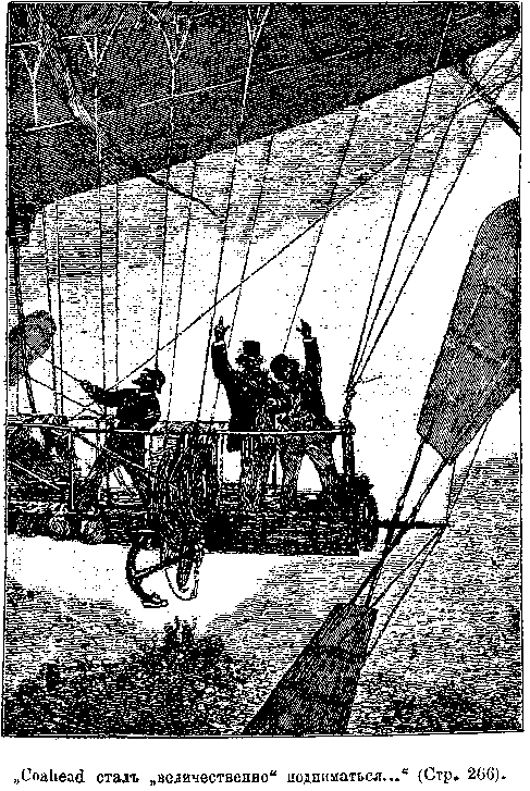 Goahead дожидался только сигнала. Въ двадцать-пять минутъ двѣнадцатаго грянулъ новый выстрѣлъ. Дядя Прюданъ и Филь Эвансъ, стоя въ лодочкѣ, приложили лѣвую руку къ сердцу – въ знакъ сердечнаго согласія съ присутствующими, – а лѣвую подняли вверхъ, указывая на зенитъ. Это значило, что они готовятся вступить въ обладаніе надземнымъ пространствомъ.
