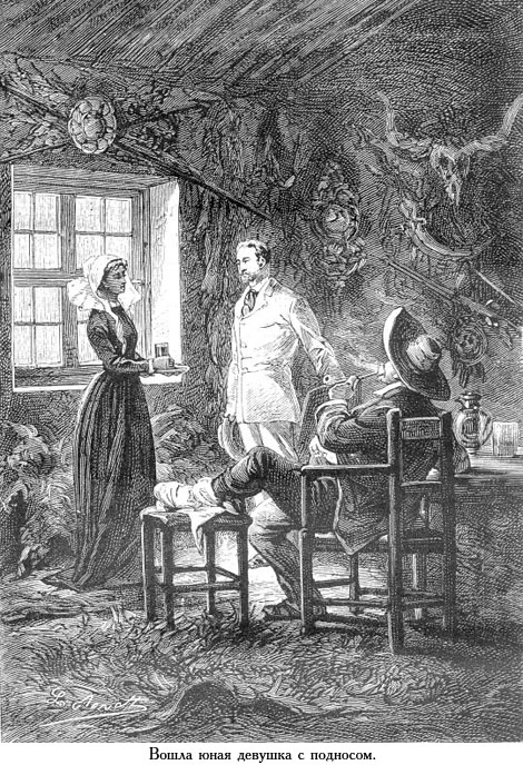 Вдруг дверь отворилась, и вошла юная девушка с подносом, на котором стоял стакан. Этому милому созданию очень шел капор, модный в ту пору у фермерш Вельда, и простенькое, в цветочках, полотняное платьице. Лет девятнадцати – двадцати по возрасту, с очень белой кожей, прекрасными светлыми и мягкими волосами, огромными голубыми глазами, нежным и веселым выражением лица, она являла собой образ здоровья, изящества, хорошего настроения.