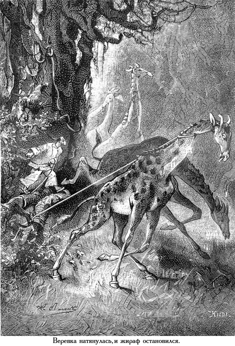 Китаец не тратил времени на созерцание этого зрелища. Увидев, что его первое лассо достигло цели, тут же схватил второе и метнул его в другого жирафа. Бросок был не менее удачным. Через полминуты перепуганное стадо уже рассеялось, а два жирафа, полузадушенные и изнемогающие, остались пленниками китайца.