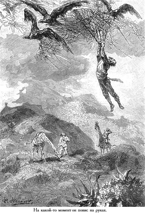 Наступило странное состояние полусна, лихорадки и бреда, когда все представления начали путаться, а время, пространство и расстояния утратили всякую реальность. Что теперь – день или ночь, светит солнце или идет дождь? Сколько времени он уже здесь – двенадцать часов или шестьдесят? Жив он или мертв? Ничего этого он не знал. Сладкие сны и жуткие кошмары непрерывно сменяли друг друга. Париж и Горная школа, отцовский очаг и ферма в Вандергаарт-Копье, мисс Уоткинс и Аннибал Панталаччи, Хилтон, Фридель и полчища слонов, Матакит и стаи птиц в бескрайнем небе, самые разные воспоминания, ощущения, антипатии и симпатии сталкивались в мозгу словно в беспорядочном противоборстве. К этим порождениям горячечного бреда примешивались порой и внешние впечатления. Среди хохота гиен, зловещего мяуканья гепардов, рычания львов и леопардов больной продолжал бредить, не приходя в сознание, и вдруг услышал выстрел, за которым последовала мертвая тишина. Затем адский концерт возобновился с новой силой и продолжался до утра.
