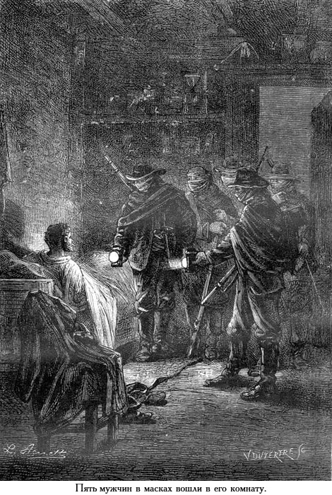 Пятеро людей в черных масках, с ружьями и пистолетами, проникли в комнату. В руках у них были лампы с выпуклыми стеклами, которые в странах, где говорят по-английски, называют Bull's eyes – бычьими глазами. Не говоря ни слова, они встали вокруг его кровати. Сиприен ни минуты не воспринимал всерьез все это театральное действо, разыгранное для него. Он подумал, что это чья-то шутка, хотя саму шутку он находил просто отвратительной.