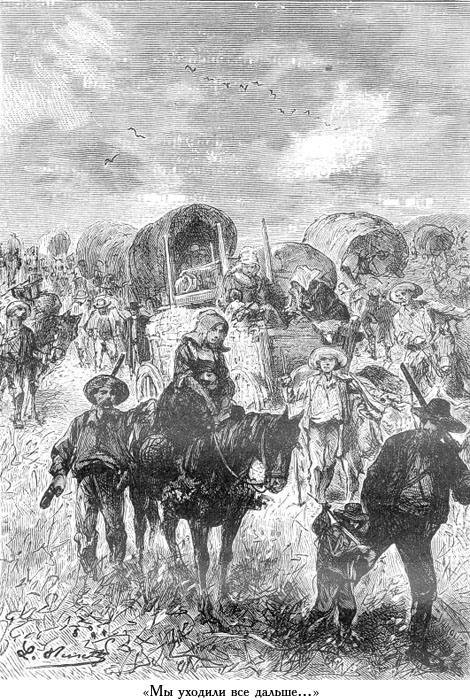 Тогда-то и свершился наш великий исход. Это произошло в тысяча восемьсот тридцать третьем году. Мы вновь эмигрировали целыми поселениями. Погрузив в фургоны, запряженные быками, нашу мебель, орудия и зерно, мы еще дальше углубились в пустыню. В то время территория Наталь была почти полностью опустошена. Кровавый завоеватель, носивший имя Чака, настоящий чернокожий Атилла [42] [42]Атилла (V в.) – предводитель гуннов, совершал опустошительные побеги на Римскую империю.