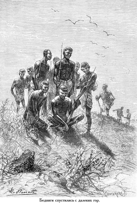 Поистине, бедняги походили на потерпевших кораблекрушение и спасшихся на плоту после двух недель голода и тревог! Они съели столько, что через каких-нибудь четверть часа могли лопнуть как рвущиеся снаряды. Ради их же здоровья, из опасения стать свидетелем гибели всех пирующих от обжорства, это пиршество следовало прекратить! Лишь один из негров – самый молодой из всех, насколько можно было судить,– проявил в утолении голода некоторую сдержанность. И, что совсем уже редкость, не забыл поблагодарить своего благодетеля, о чем остальные просто не подумали. Он приблизился к Сиприену, милым и простодушным движением взял его руку и погладил ею свою курчавую голову.