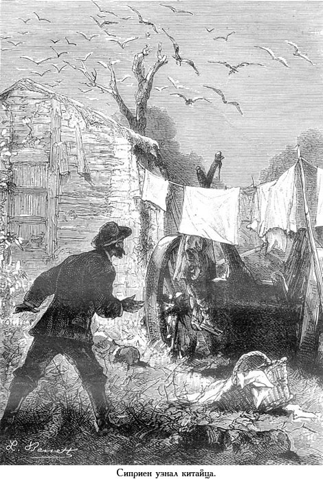 [Закрыть], что Сиприен, опасаясь, как бы тот не придумал нового способа покончить с собой, решился зайти в хижину, взяв его с собой. Ли послушно последовал за ним, сел за стол вместе со своим спасителем, выслушал его увещевания, пообещал не повторять своей попытки и, после чашки горячего чая, сообщил даже кое-какие смутные сведения из своей биографии.