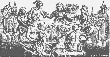 Месса прервана для пирушки. Если благородная знать пирует с мечом на боку, то здесь, напротив, на братском пиршестве не видно ни оружия, ни даже ножей.