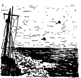 Часть буйков в этом месте трала сближается, а один из них даже ныряет в воду, точно поплавок удочки, когда клюнула рыма. Это значит, что «лезвие» зацепило мину – тяжесть, нависшая па «лезвии;., прерывает спокойное «плавание» буйков, вносит смятение в их движение. Тральщики все же продолжают двигаться вперед и тащат мину ‘вместе с ее якорем за собой. Зачем?