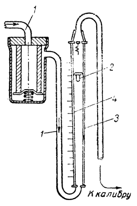 Сверху от сосуда отходит трубка, которая через последующую систему регуляторов подводит воздух к измерительной головке и сквозь нее до выходного отверстия – сопла.