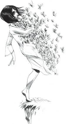 Из темноты вылетела туча бабочек и облепила её тело, будто пчелы мед. Бабочки вцепились в её накидку и, подтаскивая Агату к краю обрыву, рвали змеиную кожу на части. Когда от плаща ничего не осталось, они сбросили Агату, а сами умчались прочь. Агата с криком полетела вниз, размахивая руками... Но ей повезло приземлиться в сосновые ветки. Когда она посмотрела в небо, то увидела, как почти скрывшиеся из виду бабочки, словно пепел роняли в Лес черные лоскуты, некогда бывшие её накидкой.