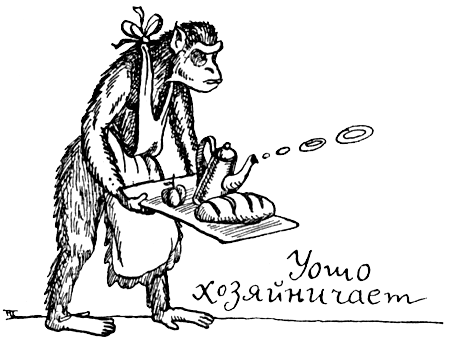 Уошо понимала, что нужно пользоваться туалетом, а в тех случаях, когда ей не удавалось найти местечко в кустах во время прогулки, она выглядела очень сконфуженной. В этом отношении она вполне догнала свою предшественницу Вики. Пока Вики была маленькой, ее награждали конфетой за каждое своевременное посещение туалета. Иногда она брала эту награду сама из стоявшей на буфете вазы. О том, как серьезно относилась обезьяна к своим «обязанностям», свидетельствует такой факт. Как и у всякого ребенка, у Вики тоже случались неприятности. Однажды она решила взять свой приз еще до того, как посетила туалет, но не рассчитала и не успела до него добежать. И хотя рядом никого не было (вернее, она не видела, что за ней наблюдают), она положила конфету на место, понимая, что награды ей не положено.