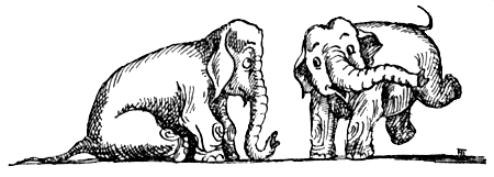 Такое изобретение новых действий, которые не имеют практического применения, отмечено и у других животных, например у собак и дельфинов. А наблюдатели в Африке обратили внимание на одного слоненка, который регулярно развлекался тем, что принимал необычные позы, редко встречающиеся у его сородичей. Он научился ползать на брюхе, перекатывался через спину, волочил задние ноги, словно раненый олень, или усаживался с опущенными ушами, как собака. Такие трюки можно видеть у слонов в цирке, но там они усваивают их только благодаря упорному труду дрессировщика.