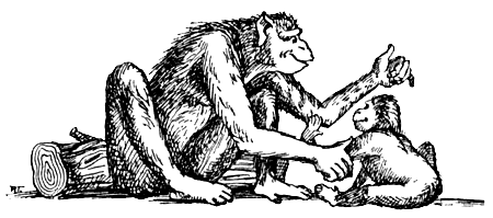 Как бы ни были сложны и интересны игры грызунов, птиц и собак, особое внимание и ученых, и любителей природы всегда привлекали игры обезьян, особенно человекообразных. Сначала это были отрывочные наблюдения за поведением отдельных особей в зоопарках, которые жили обычно поодиночке в клетках или (гораздо реже) по нескольку в вольерах.