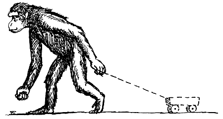 Нередко они разыгрывают небольшие спектакли, для которых явно требуются элементы «творческого воображения». Одно из первых подтверждений этому – игры с воображаемыми предметами. Шимпанзе Вики подолгу играла одна, как это делают и дети, растущие без сверстников. Она усердно изображала, что возит за собой на веревочке игрушку. Все ее действия при этом были очень правдоподобны. Она придавала телу соответствующую позу, обводила воображаемую «веревочку» вокруг препятствий и дергала ее, как будто та застревала или цеплялась за что-то.