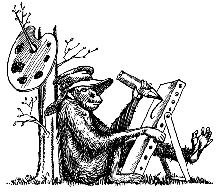 А в результате оказалось, что автором картин была обезьяна! Ей дали краски и холст и показали, как ими пользоваться. Обезьяне занятие пришлось явно по вкусу. И не только ей. Очень многие человекообразные обезьяны с удовольствием рисуют. Можно, конечно, возразить, что животное просто играло с карандашом и бумагой, с краской и холстом, что это не картина как таковая. Но такие рисунки или живописные работы надо хоть раз в жизни увидеть, чтобы понять, – это результат творчества, хотя и примитивного. А о том, что именно нарисовано, иногда можно спросить у самого автора.