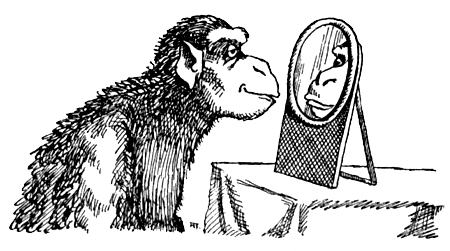 Человек перед зеркалом может думать о самых разных вещах, но, даже увидев в зеркале несколько лиц, не колеблясь, поправляет собственную прическу или смявшийся воротник – он понимает, что он это он, а рядом с ним причесывается его товарищ. Это нам кажется естественным. Мы осознаем, как выглядим со стороны, какими нас видят другие люди. А как обстоит дело у животных?