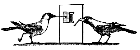 Если бы дело ограничилось этим, то работа не представляла бы особого интереса, так как путем дрессировки у животных удается сформировать и гораздо более сложные навыки. Однако вороны на этом не успокоились. Довольно быстро они усовершенствовали приобретенный навык неожиданным для экспериментаторов образом. Они стали нажимать на кнопку не только через предназначенное для этого отверстие в щитке, но и через щель между нею и щитком.