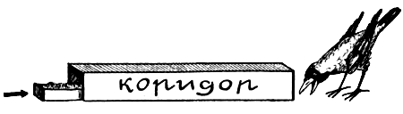 В этом опыте птица ест из кормушки с кормом, которая движется по полу экспериментальной комнаты. Затем пища скрывается в длинном (до 2 м) узком деревянном ящике, который стали называть «коридором». Как же ведут себя птицы разных видов в этой ситуации? Оказалось, что совершенно по-разному. Напомним, что все птицы голодны и стремятся клевать только что показанный им корм. Голуби почти не ищут исчезнувший корм, а сразу уходят в сторону. Куры задерживаются у начала коридора, где исчезла кормушка, а некоторые даже проходят немного вдоль него, хотя никогда не доходят до конца. Совсем другое дело – врановые. И вороны, и сороки уверенно бегут вдоль коридора за исчезнувшей в нем кормушкой. Иногда они даже опережают кормушку и, совсем как ворона в рассказе Сетон-Томпсона, ждут, когда пища появится с противоположного конца.