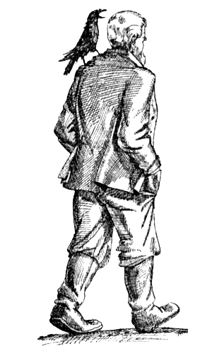 Однажды, гуляя вдоль берега Дуная, Лоренц услышал звучный призыв ворона. Когда Лоренц ответил ему, издав очень похожий крик, эта большая птица, летевшая высоко в небе, сложила крылья и, со свистом разрезая воздух, стремительно понеслась вниз. Ближе к земле она широко расправила крылья, тем самым замедлив падение, и легко опустилась на плечо человека.