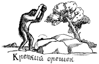 Мы, люди, привыкли за столом пользоваться обеденными приборами, различными приспособлениями. Думаете, животные этого не умеют? Умеют, и еще как изобретатель но! Когда поспевают пальмовые орехи, обезьяны охотно едят их. Подобно каланам, они прибегают к помощи камней для разбивания твердых орехов, но в отличие от каланов их приемы весьма многообразны. Они могут просто разбивать плоды с прочной скорлупой ударом о любую твердую поверхность, но могут применять и метод «молота и наковальни». В качестве последней они используют только наиболее твердые поверхности, а камни, пригодные на роль молотка, приносят иногда из-за сотен метров. Любопытно, что у разных особей есть свои излюбленные приемы.