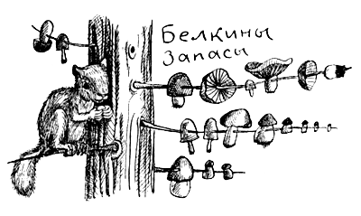 Подсчитано, что одна белка в средней полосе запасает до 300 грибов, а в Западной Сибири, где зима более суровая, – до 2000. А крошечный грызун полевка-экономка в суровых районах Восточной Сибири и на Камчатке запасает до 15 кг корневищ, клубней и семян, а в более западных районах, где зима не столь сурова, она не запасает ничего.